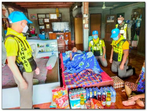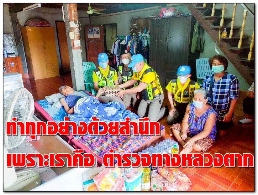 “ตำรวจทางหลวง ห่วงใยทุกชีวิต เป็นมิตรทุกเส้นทาง” บำเพ็ญประโยชน์นำสิ่งของเครื่องใช้ อุปโภคบริโภค ที่จำเป็นไปแจกจ่ายให้กับผู้ป่วยติดเตียง