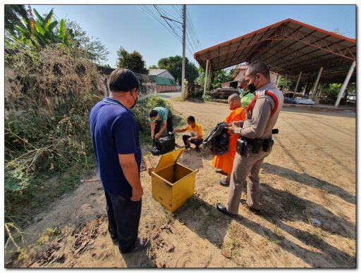 ต่อมาเมื่อเวลาประมาณ 09.30 น. วันที่ 19 ม.ค. 65 พ.ต.ท.สุวิช พิษอ่อน สารวัตรสอบสวนสถานีตำรวจภูธรเมืองกำแพงเพชร ได้รับแจ้งเหตุลักทรัพย์ตู้บริจาค จึงได้เดินทางมาตรวจสอบดูที่เกิดเหตุ พบว่า ตู้บริจาคกองทุนอาพาธสงฆ์ ซึ่งเป็นตู้ไม้ที่เปิดเป็นกระจก ถูกทุบจนแตก เงินที่อยู่ด้านในถูกขโมยไป เหลือเพียงเหรียญ 1 บาท มีดดาบปลายแหลมวางไว้ด้านบน 1 เล่ม