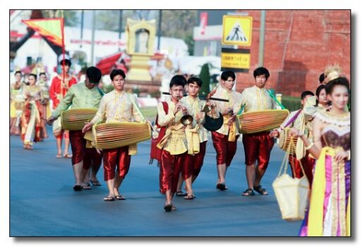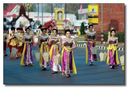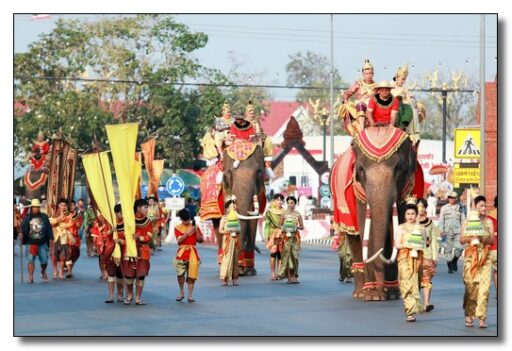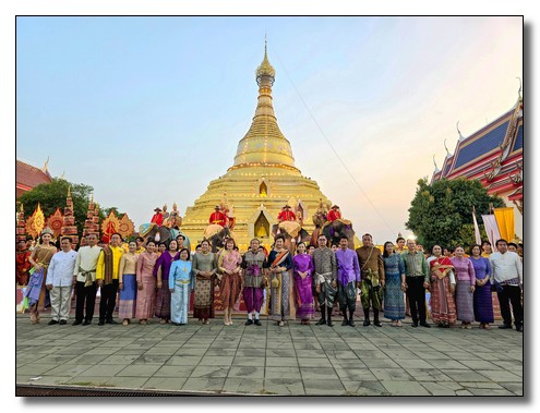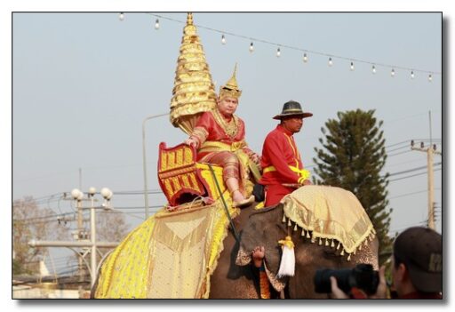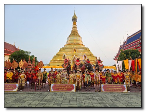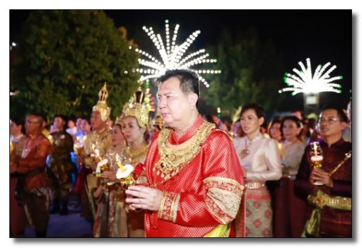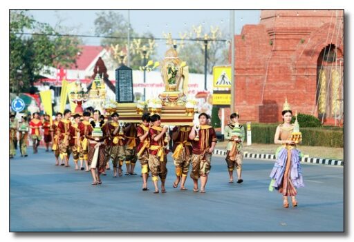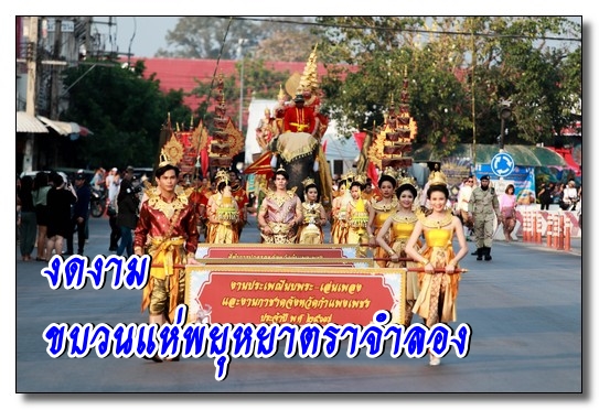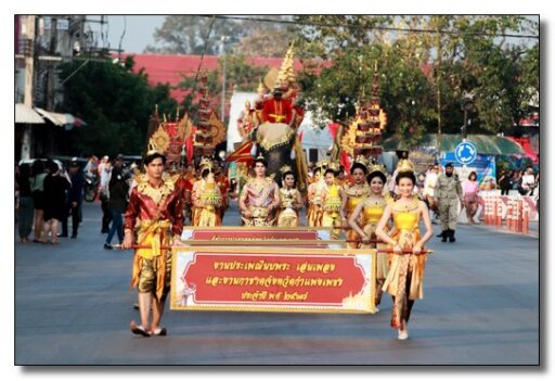 นายชาธิป รุจนเสรี ผู้ว่าราชการจังหวัดกำแพงเพชร ได้แต่งกายเป็นพระมหาธรรมราชาที่ 1 (พระยาลิไท) และนางกาญจนี รุจนเสรี นายกเหล่ากาชาดจังหวัดกำแพงเพชร แต่งเป็นพระมเหสี นำขบวนพุทธบูชาพระบรมสารึรีกธาตุ หรือ ขบวนพยุหยาตราจำลองครั้งในอดีตของพระมหาธรรมราชาลิไท ทรงเสด็จทางสกลมารค เพื่อมาประดิษฐ์สถานสารีริกธาตุและปลูกต้นศรีมหาโพธิ์ ณ เมืองนครชุม โดยเสด็จบนพระที่นั่งหลังช้าง มีกษัตริย์ พระมเหสี พระบรมวงศานุวงศ์ ข้าทูลละอองธุลีพระบาทและเสนาที่ตามเสด็จในขบวน ล้วนทรงฉลองพระองค์และแต่งกายอย่างงดงามตามยุคสมัย
