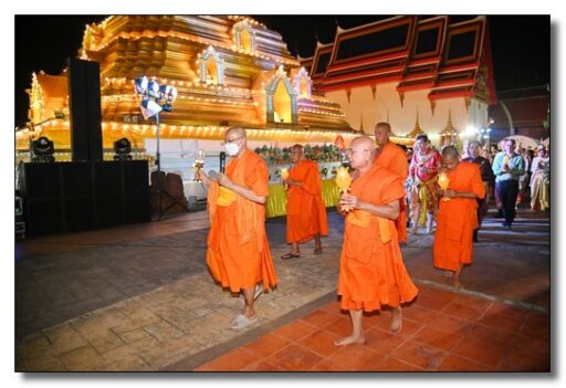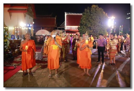 หลังจากขบวนถึงวัดพระบรมธาตุนครชุมเป็นที่เรียบร้อยแล้ว ได้เป็นพิธีเปิดโดยผู้ว่าราชการจังหวัดกำแพงเพชรพร้อมกับชุดการแสดง”รำพุทธบูชานบพระบรมธาตุ” 667 ปี มีผู้ร่วมรำพุทธบูชาจำนวน 667 คน ซึ่งเป็นภาพที่พร้อมเพรียงสวยงามตระการตา เสร็จแล้วเป็นพิธีเวียนเทียน สวดมนต์เนื่องในวันมาฆะบูชา