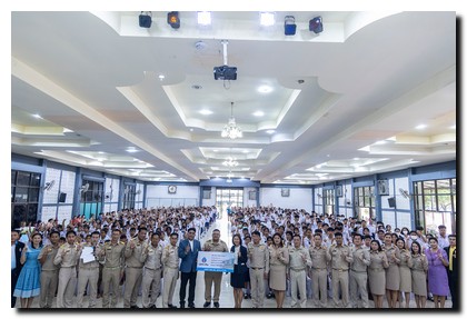 พร้อมมอบงบประมาณสนับสนุนโครงการ จำนวน 158,000 บาท แก่ ดร.จรัญ พะโยม นายกสมาคมผู้ประกอบวิชาชีพครูและบุคลากรทางการศึกษาอำเภอลานกระบือ ณ สนามสอบโรงเรียนลานกระบือ อ.ลานกระบือ จ.กำแพงเพชร