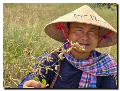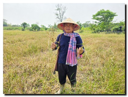 โดยเฉพาะภายในพื้นที่นาจะปลูกข้าวหอมมะลิไว้กินเอง ส่วนหนึ่งนำไปทำบุญ เมื่อเก็บเกี่ยวข้าวตอแรกแล้วจะไม่ไถกลบ ใส่น้ำลงไปจากนั้นจะหว่านเมล็ดพันธุ์ถั่วเหลืองลงในแปลงนา พอตอข้าวได้น้ำ จะงอกเมล็ดพันธุ์รุ่นสองออกมาให้ได้เก็บเกี่ยว ส่วนเมล็ดพันธุ์ถั่วเหลืองเจริญงอกงามตามขึ้นมา สามารถเก็บเกี่ยวถั่วเหลืองเป็นรายได้อีก แต่ต้องใช้ความเพียรเพราะต้องใช้มือเกี่ยว เพื่อเป็นการประหยัดต้นทุน ส่วนที่อยากนำเสนอมากที่สุด คันนาทองคำ เนื่องจากเกษตรกรทั่วไป จะเห็นว่า การนำ พืช ผัก ต้นไม้ ไปปลูกบนคันนาจะทำให้ขวางทาง และปัจจุบันหัวคันนาจะมีขนาดเล็ก เพราะคิดว่าจะเสียพื้นที่ทำกินไป ทำให้การปลูกพืชหลักได้น้อยลง