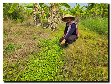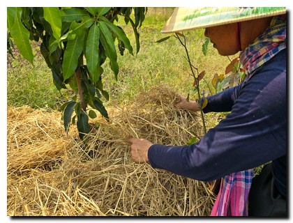 ซึ่งตนมองว่าทำหัวคันนาให้กว้างขึ้น มีประโยชน์เป็นอย่างมาก ดีกว่าปล่อยให้อยู่โล่งๆ จึงได้ปลูกพืชที่สามารถกินได้โดยรอบ ทั้งไม้ยืนต้น ไม้ล้มลุก เช่น มะม่วง มะพร้าว มะละกอ ขนุน พริก มะเขือ รวมถึงไม้กินใบ เป็นต้น โดยใช้วิธีการห่มฟางข้าว จะเห็นได้ว่าหลังจากเก็บเกี่ยวข้าวแล้ว ฟางข้าวมีประโยชน์ นำมาห่มบริเวณโคนต้นไม้ เพื่อเพิ่มความชุ่มชื้นป้องกันแสงแดด และป้องกันหญ้าขึ้น ส่วนหัวคันนาเปรียบเสมือนเขื่อนไว้กั้นเก็บน้ำ นี้คือหลักกสิกรรมธรรมชาติ สามารถสอบถามรายละเอียดเพิ่มเติมได้ที่ 0931949379