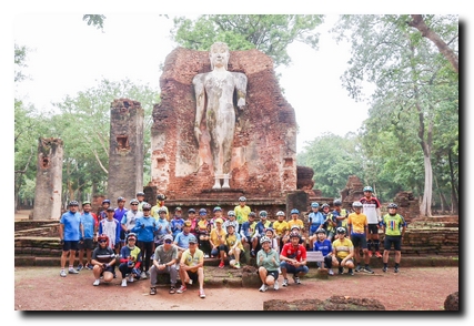 สำหรับวันนี้ หลังจากนักปั่นออกจากจุดปล่อยตัว ถึงบริเวณวัดพระสี่อริยะบท เขตอุทยานประวัติศาสตร์กำแพงเพชร ซึ่งเป็นโบราณสถานอันเก่าแก่ ควบคู่มากับประวัติศาสตร์ชาติไทยและถือว่าเป็นดินแดนศักดิ์สิทธิ์ คณะผู้ปั่นได้ร่วมยืนสงบนิ่ง เพื่อสดุดีแก่เหล่าทหารกล้าที่เสียชีวิตพร้อมร่วมภาวนาให้สิ่งศักดิ์สิทธิ์ได้ปกป้องคุ้มครองพี่น้องทหารกับการทำหน้าที่ปกป้องอธิปไตย พร้อมประชาชนที่อยู่ในเขตพื้นที่ชายแดนกับการเกิดเหตุการณ์สู้รบในขณะนี้