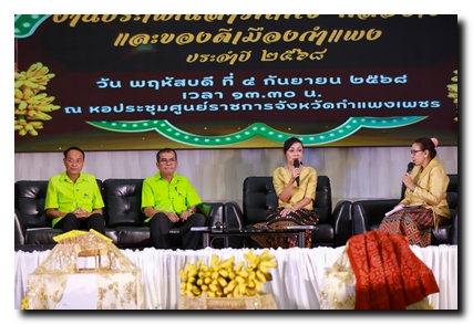 นางสาวสุพัตรา คล้ายทิม รองผู้ว่าราชการจังหวัดกำแพงเพชร กล่าวว่า การจัดงานประเพณีสารทไทย – และของดีเมืองกำแพง ประจำปี 2568 ของจังหวัดกำแพงเพชร เป็นงานสำคัญที่จัดต่อเนื่องมาอย่างยาวนาน เพื่อรักษาวัฒนธรรมประเพณีอันดีงาม และส่งเสริมผลิตภัณฑ์จากกล้วยไข่ ซึ่งเป็นของขึ้นชื่อของจังหวัด โดยกล้วยไข่กำแพงเพชร มีการปลูกกันมาอย่างยาวนาน ถึงแม้ว่าปัจจุบันมีพื้นที่การเพาะปลูกน้อยลง แต่ยังเป็นสินค้าสำคัญที่ยังทำรายได้จำนวนมากให้จังหวัด การจัดงานนี้จึงถือเป็นการอนุรักษ์และส่งเสริม รวมถึงการกระตุ้นเศรษฐกิจการท่องเที่ยวในพื้นที่อีกด้วย