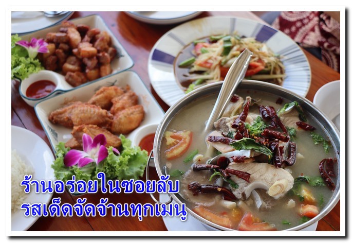 ส่วนเมนู“ร้านอร่อยในซอยลับ”มีหลากหลายเมนูมาก ทั้งส้มตำ ต้มยำ แกง ทอด ยำ แต่ที่แนะนำเลยต้องสามชั้นทอดน้ำปลา กะหล่ำปลีทอดน้ำปลาไข่ข้น แกงคั่วหอยขม ผัดสามเหม็น กุ้งผัดสะตอ ซุปเนื้อน่องลาย (ใครไม่ทานเนื้อเปลี่ยนเป็นไก่ได้) กุ้งอบวุ้นเส้น / หมูสามชั้น ต้มยำปลาเทโพ