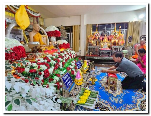 พระบรรเจิด ปัญญาปะโชโต รองเจ้าอาวาสวัดคฤหบดีสงฆ์ เล่าว่า นอกจากการเปลี่ยนผ้าไตรจีวรสรีระสังขารของหลวงปู่ทำสืบทอดกันมายาวนานเป็นปีที่ 48 แล้ว การสวดอภิธรรมเพื่อรถลึกถึงคุณูปการในองค์หลวงปู่แล้ว ยังเป็นการร่วมบำเพ็ญกุศลไปยังหลวงปู่อีกด้วย