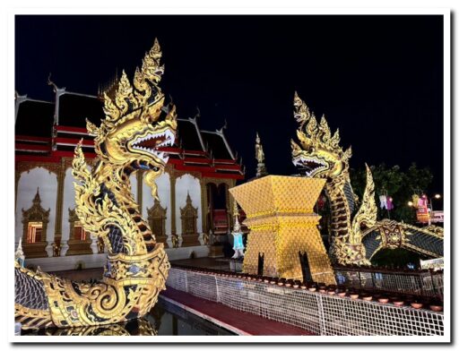 วัดทุ่งสนุ่นรัตนาราม ม.4 ต.ระหาน อ.บึงสามัคคี จ.กำแพงเพชร บริเวณหน้าโบสถ์ มีองค์พญานาค 2 องค์ใหญ่ คือ “พญาวิรูปักโขนาคาธิราช” และ “พญานพเกตุนาคินีเทวี” ที่ได้สร้างไว้ให้ญาติโยมได้กราบสักการะขอพร โดยวันค่ำคืนที่ผ่านมา วันที่ 7 ต.ค. 68 เป็นวันออกพรรษา ชาวบ้านได้รวมประกอบพิธี “จุดเทียนประทีป” บุญเดือนสิบเอ็ดออกพรรษา ซึ่งจะจัดขึ้นในวันออกพรรษาของทุกปีสืบทอดกันมายาวนาน ก่อนที่วันรุ่งขึ้นจะเป็นประเพณีตักบาตรเทโว โดยเชื่อกันว่าการจุดเทียนประทีปนั้นคือความเชื่อ 2 ประการที่ว่า คือ จุดเพื่อบูชา นางกาเผือก ตามนิทานที่เล่าว่า นางกาเผือกมีไข่ 5 ฟอง แต่ละฟองถูกลมพายุพัดกระจัดกระจายกันไป แต่เมื่อฟักออกมาแล้วกลับกลายเป็นมนุษย์เพศชายทั้ง 5 คน เมื่อเจริญวัยขึ้นได้ถือบวชเป็นฤาษี จนอธิษฐานบารมีปรารถนาเป็นพระพุทธเจ้าทั้งหมด จึงได้ชื่อว่า พระพุทธเจ้า 5 พระองค์