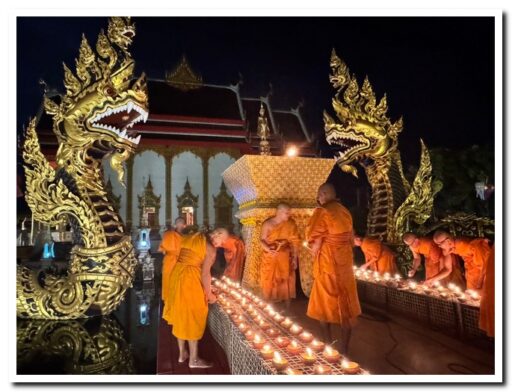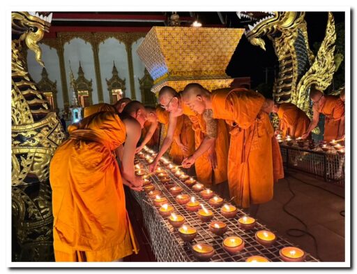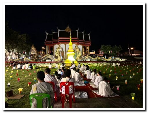 พุทธศาสนิกชนร่วมจุดเทียนประทีป ช่วงเทศกาลออกพรรษาสืบสานวัฒนธรรมชาวอีสานสวยงามสว่างไสว