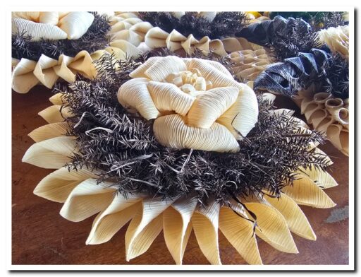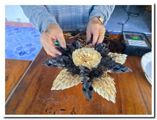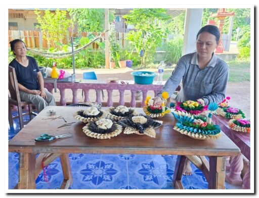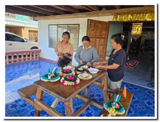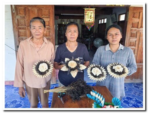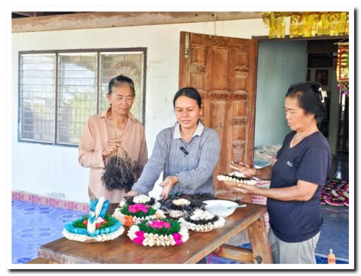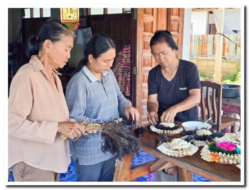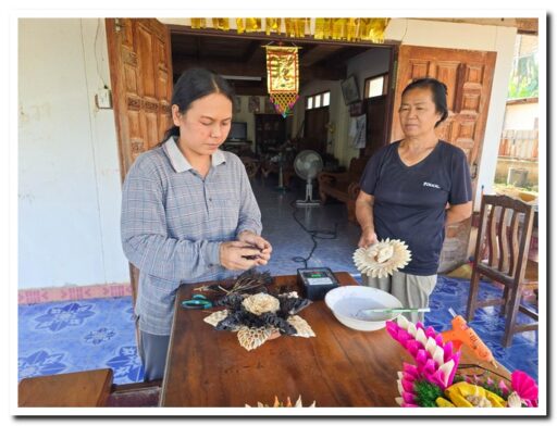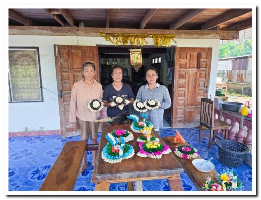 กลุ่มสตรีและผู้สูงอายุ ตำบลลานดอกไม้ตก สืบสานภูมิปัญญา ทำกระทงเปลือกข้าวโพด สีขาวดำ น้อมรำลึกและถวายความอาลัย “สมเด็จพระพันปีหลวง”