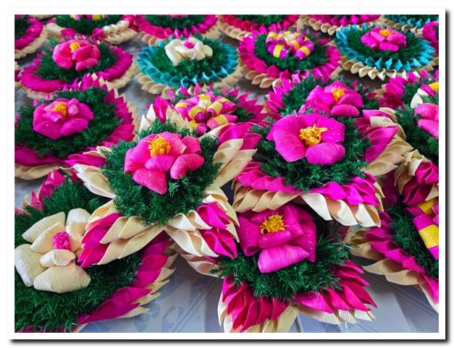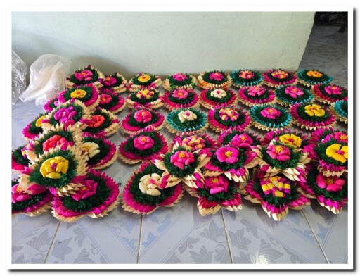 กลุ่มสตรีและผู้สูงอายุในพื้นที่ตำบลลานดอกไม้ตก อำเภอโกสัมพีนคร จังหวัดกำแพงเพชร ในช่วงทุกปีใกล้ถึงเทศกาลลอยกระทง แต่ละบ้านจะทำกระทงเปลือกข้าวโพด ที่ทำจากวัสดุธรรมชาติในท้องถิ่น โดยเฉพาะกระทงโทนสีต่างๆ เพื่อส่งให้พ่อค้าแม่ค้ามารับไปขายในประเพณีลอยกระทง