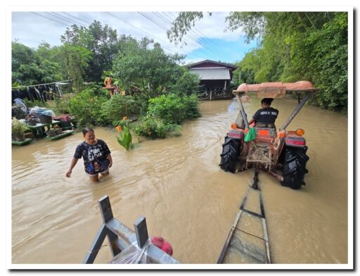 จากสถานการณ์ฝนที่ตกลงมาอย่างหนักและต่อเนื่องในพื้นที่จังหวัดกำแพงเพชร ส่งผลให้เกิดน้ำไหลหลากเข้าท่วมพื้นที่ใน ตำบลวังไทร อำเภอคลองขลุง ชาวบ้านหลายรายได้รับความเดือดร้อนอย่างหนัก โดยเฉพาะการสัญจรเข้าออกบ้านเรือนเป็นไปด้วยความยากลำบาก ต้องอาศัยเรือ หรือรถที่ยกสูงเป็นพิเศษอย่าง รถทางการเกษตรของเพื่อนบ้าน เป็นพาหนะในการเดินทางเพื่อไปจับจ่ายใช้สอยและทำธุระ ระดับน้ำที่ท่วมพื้นถนนและบ้านเรือน สร้างความกังวลให้กับผู้ประสบภัยอย่างยิ่งในการดำเนินชีวิตประจำวัน