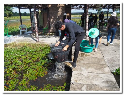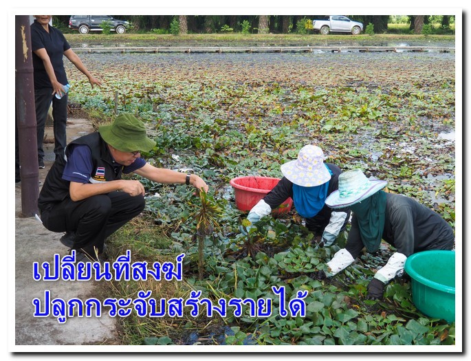 เปลี่ยนพื้นที่ศาสนสถาน ให้เกิดประโยชน์สูงสุดแก่ชุมชน ปลูกกระจับสามารถเก็บจำหน่ายผลสดให้พ่อค้าคนกลาง สร้างรายได้เสริมให้ชุมชน สามารถนำกระจับแปรูปเป็นอาหารคาวหวานเพิ่มความอร่อยได้อย่างลงตัว