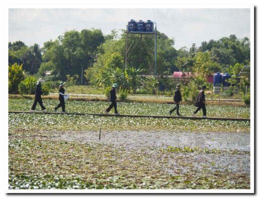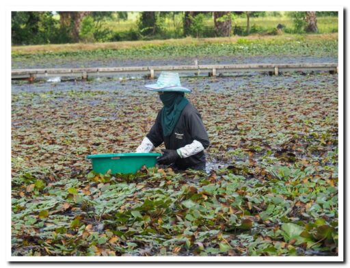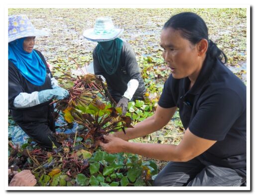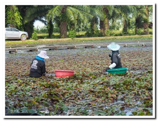 นางทองสุข พยับ ผู้ใหญ่บ้านหมู่ 4 บ้านโคกเจริญ ตำบลหนองทอง อำเภอไทรงาม จังหวัดกำแพงเพชร เป็นเกษตรกรผู้นำที่มีบทบาทสำคัญในการขับเคลื่อนชุมชน ด้วยความไว้วางใจจากเจ้าอาวาสวัดใหม่โคกเจริญ ได้รับมอบหมายให้ดูแลและบริหารจัดการพื้นที่เกษตรของวัดจำนวน 9 ไร่ เพื่อใช้ประโยชน์ในการปลูกกระจับ โดยเปิดให้ชาวบ้านและญาติโยมสามารถเก็บผลผลิตไปรับประทาน หรือจำหน่ายสร้างรายได้เสริมในครัวเรือน