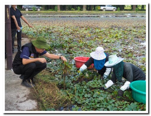นายธนดล วงษ์ขันธ์ เกษตรจังหวัดกำแพงเพชร นายรัฐพล ปิ่นชัยมูล เกษตรอำเภอไทรงาม พร้อมด้วยเจ้าหน้าที่สำนักงานเกษตร การลงพื้นที่ส่งเสริมและสนับสนุนให้เกษตรกร ยกระดับคุณภาพผลผลิตทางการเกษตรให้สอดคล้องกับความต้องการของตลาด ตลอดจนพัฒนาการเกษตรในพื้นที่ให้มีความเข้มแข็งและยั่งยืนต่อไป การปลูกกระจับ (หรือที่ชาวบ้านเรียกกันว่า กระจับเขาควาย เนื่องจากมีรูปทรงคล้ายเขาควาย) มีเนื้อสีขาว กรอบ มัน และอุดมไปด้วยคุณค่าทางโภชนาการ สามารถนำมาทำเป็นอาหารหลากหลายชนิด อาทิ เมนูกระจับในน้ำกะทิ ซึ่งมีรสชาติกรอบอร่อย นอกจากนี้ยังสามารถนำมาทำเป็น แกงส้ม หรือต้มรับประทานเป็นเมนูอื่นได้อีกด้วย