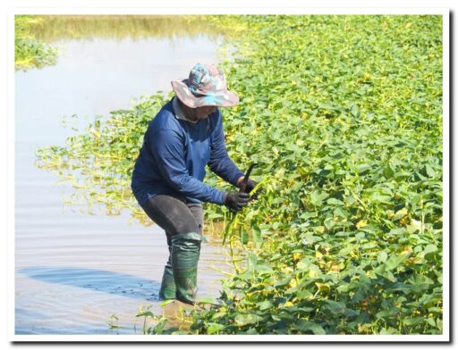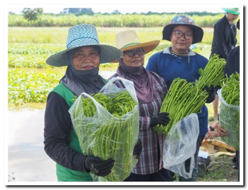 นางสาววรรณพร เจ็ดกริช เล่าให้ฟังว่า เดิมทีประกอบอาชีพปลูกข้าวเพียงอย่างเดียว แต่เมื่อประสบกับปัญหาราคาข้าวที่ลดลงเรื่อย ๆ ทำให้รายได้ไม่แน่นอน จึงตัดสินใจครั้งสำคัญในการ กระจายความเสี่ยง ด้วยการปรับเปลี่ยนพื้นที่นาบางส่วนทำการปลูก ผักบุ้งแก้ว ซึ่งเป็นพืชหมุนเวียนที่ให้ผลผลิตเร็วและเป็นที่ต้องการของตลาด การปลูกผักบุ้งแก้วถือเป็นการลงทุนที่คุ้มค่า เนื่องจากสามารถเก็บเกี่ยวและจำหน่ายได้อย่างต่อเนื่องตลอดทั้งปี ไม่จำเป็นต้องซื้อต้นพันธ์ใหม่ สามารถตัดต้นบุ้งแก้วที่มีความสมบูรณ์ในแปลงนาขายปลักชำต่อในรอบต่อไปได้เลย ทำให้ครัวเรือนของนางสาววรรณพร สามารถผ่านพ้นช่วงวิกฤตราคาข้าวได้อย่างมั่นคง