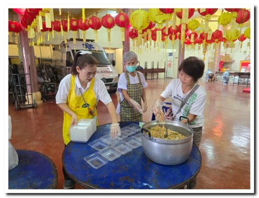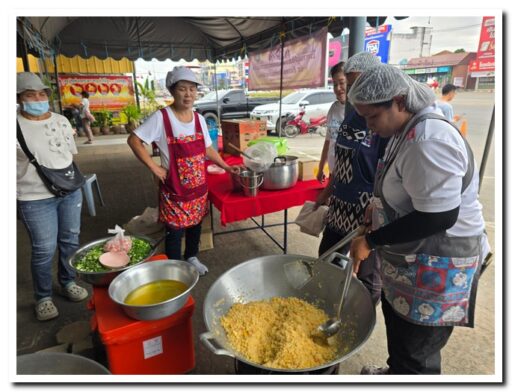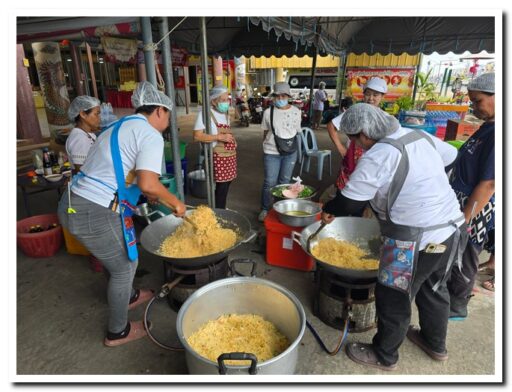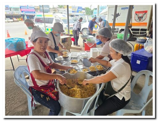 จิตอาสาและเจ้าหน้าที่ ของมูลนิธิฯ ได้รวมตัวกันตั้งแต่ช่วงเช้า เพื่อเตรียมวัตถุดิบและลงมือปรุงอาหารปริมาณมาก เมนูหลัก ที่จัดทำในครั้งนี้คือ ข้าวผัด และ ผัดไทย ผัดซีอิ้ว โดยใช้กระทะขนาดใหญ่ เพื่อให้สามารถประกอบอาหารได้อย่างรวดเร็ว