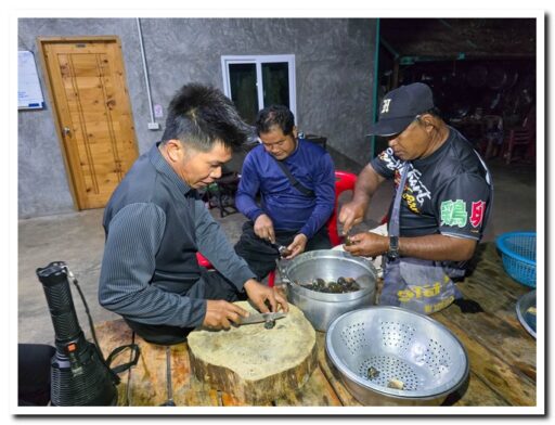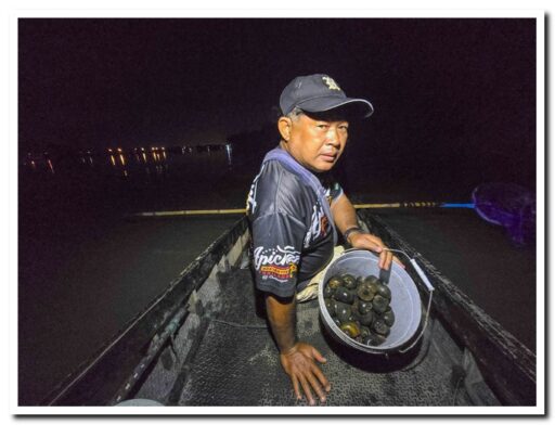 นอกจากจะได้ปลาไปขายแล้ว การเก็บหอยก็เป็นอีกหนึ่งช่องทางสร้างรายได้เล็กๆ น้อยๆ และยังเป็นอาหารที่อร่อยในคืนนี้ด้วย วิถีชีวิตเรียบง่ายของนายชเล สมบูรณ์ทรัพย์ ที่โตมากับลุ่มแม่น้ำปิง รู้จักใช้ประโยชน์จากทรัพยากรธรรมชาติรอบตัวได้อย่างคุ้มค่า ทั้งการหาปลาเพื่อการค้าและการบริโภค และการเก็บหอยสร้างสรรค์เป็นเมนูเด็ด ถือเป็นการดำเนินชีวิตตามหลักเศรษฐกิจพอเพียงที่พึ่งพาตนเองได้