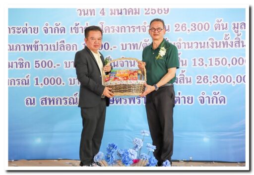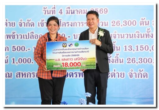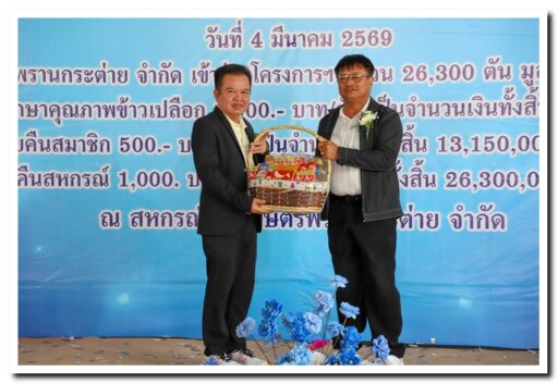 สหกรณ์การเกษตรพรานกระต่าย เดินหน้ายกระดับราคาข้าว มอบค่าฝากเก็บโครงการชะลอการขายข้าวเปลือกนาปี สิงห์โตทองไร้ซ์” ร่วมยินดีเกษตรกร พร้อมมอบข้าวสารปันสุข